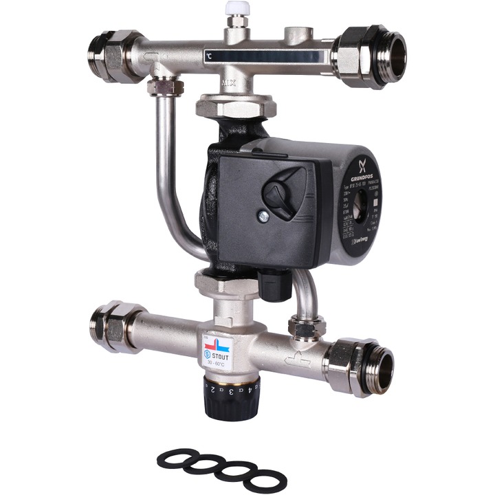 Насосно-смесительный узел с термостатическим клапаном 30-60°C, с насосом UPSO 25-65,130mm STOUT