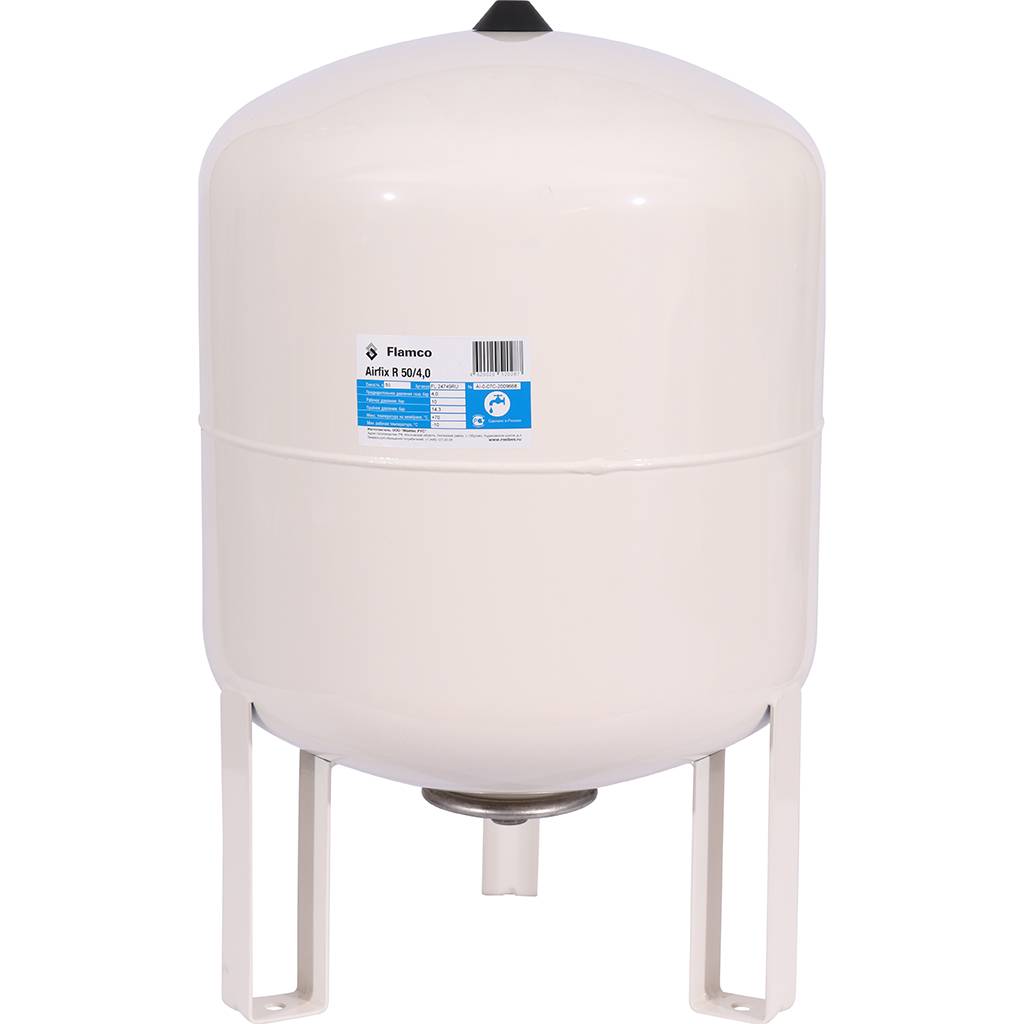 Flamco Airfix R - это 50-литровый мембранный расширительный бак для систем водоснабжения, предназначенный для поддержания стабильного давления в системе и предотвращения гидроударов. Предварительное давление составляет 4,0 бара, максимальное рабочее давление - 8 бар.