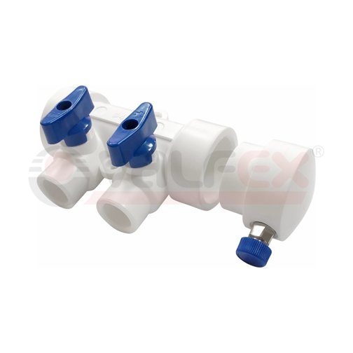 Коллектор PPR с отсечными синими кранами и воздухоотводчиком 40х20 6 выхода (25/1) (Valfex) БЕЛЫЙ
