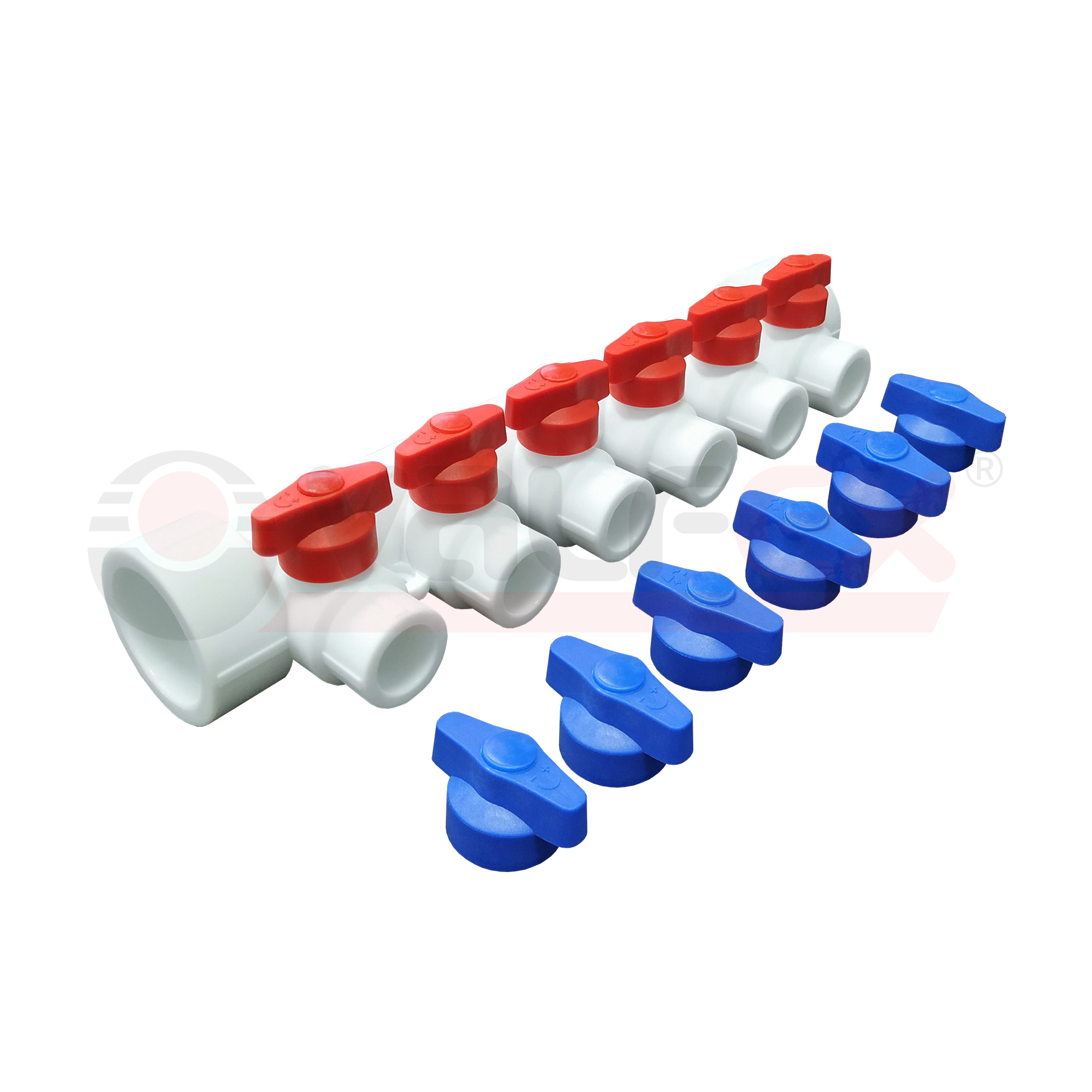 Коллектор универсальный с отсечными кранами 40х20 на 5 выходов (6/1) (Valfex) СЕРЫЙ