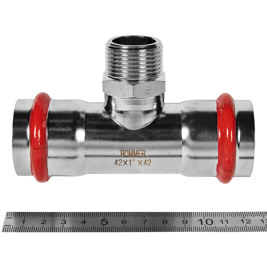 Тройник-переходник ВПр-НР 42х1 из нержавеющей стали прессовой ROMMER