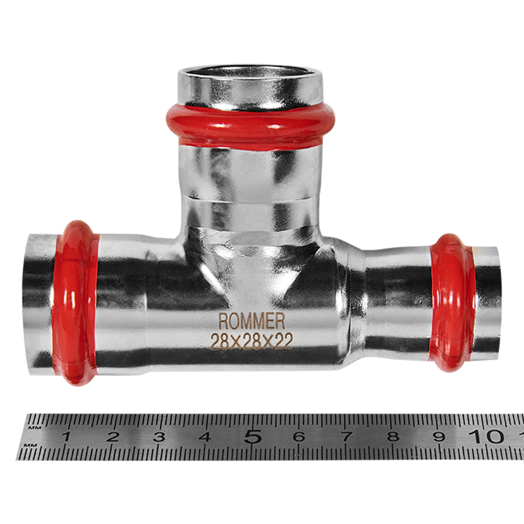 Тройник переходной ВПр 28х28х22 из нержавеющей стали прессовой ROMMER