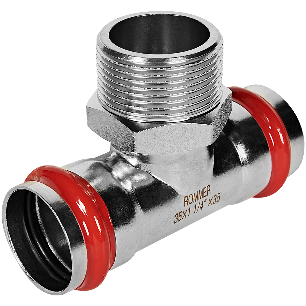Тройник-переходник ВПр-НР 35х11/4 из нержавеющей стали прессовой ROMMER