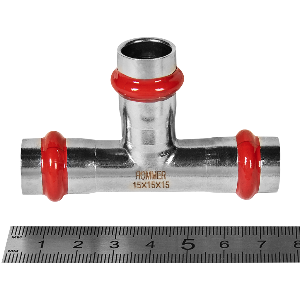 Тройник равнопроходной ВПр, 15, из нержавеющей стали прессовой ROMMER
