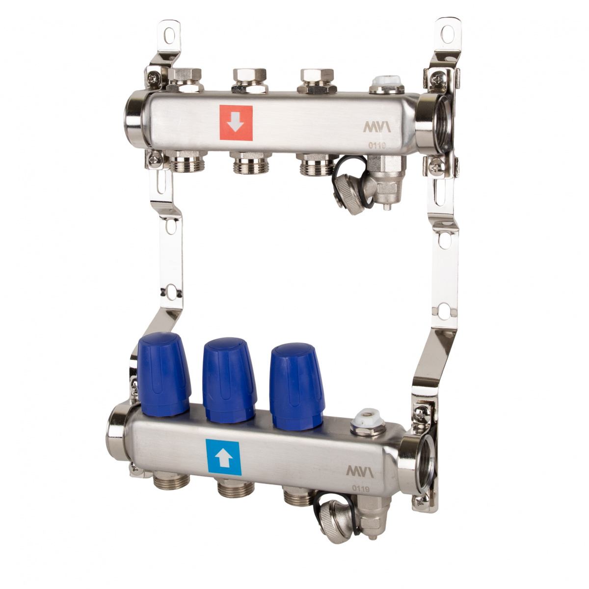 Коллектор без расходомеров, с дренажем и Маевским 1"х3/4", 3 вых. MVI
