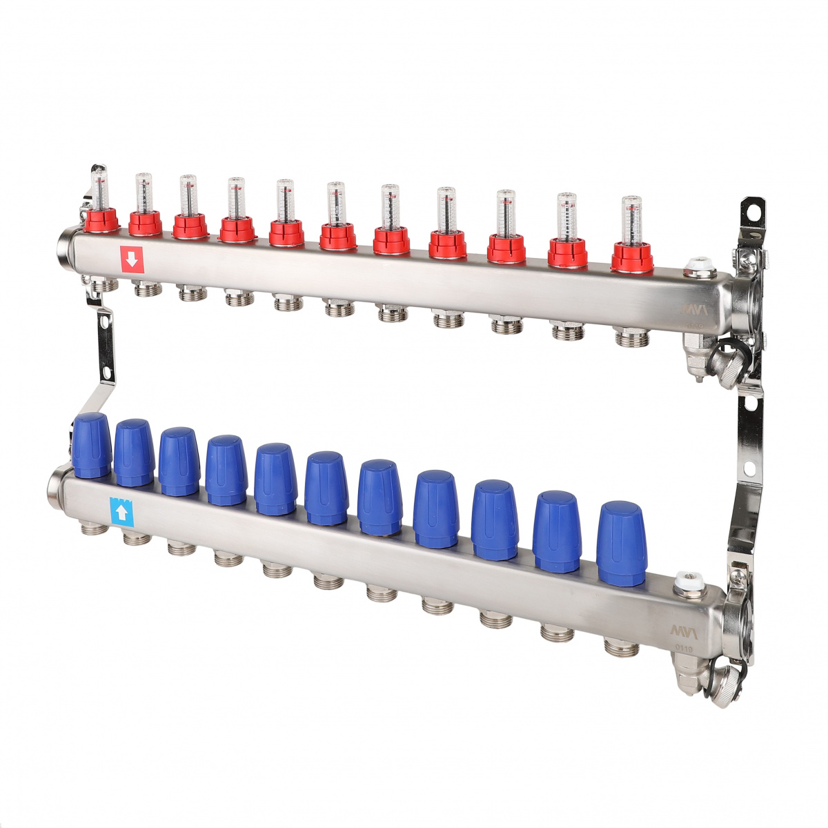 Коллектор с расходомерами, с дренажем и Маевским 1"х3/4", 11 вых. MVI