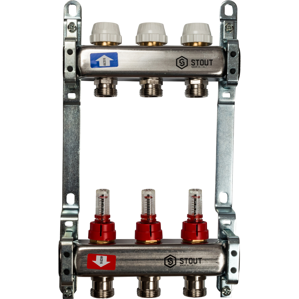 Коллектор из нержавеющей стали с расходомерами 1"/3/4"x3 STOUT