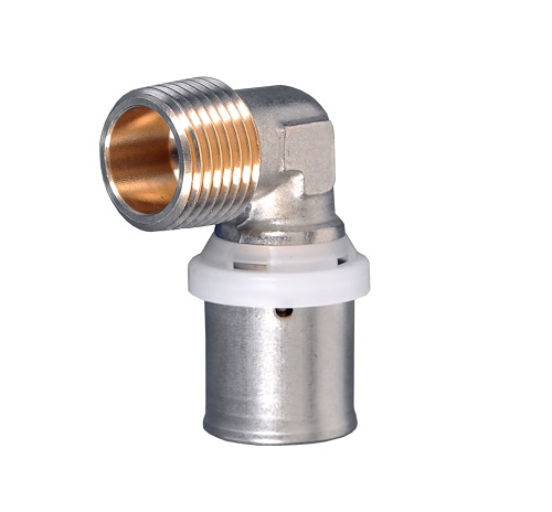 Пресс-фитинг угольник с переходом на наружную резьбу MV предназначен для подключения к металлопластиковым трубопроводам элемента с внутренней резьбой. Корпус фитинга выполнен из латуни марки CW617N, уплотнительные кольца – из EPDM, пресс-гильзы – из нержавеющей стали. Для монтажа применяется пресс-инструмент с насадками типа «ТН»